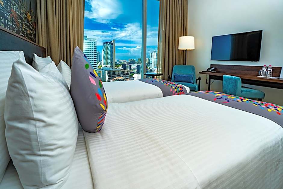 Opplev Colombo fra en takterrasse hvor et utendørs infinitybasseng kun for voksne glitrer — en forfriskende oase med egen utsikt. Restauranten på stedet bidrar til stemningen med miljøer som varierer fra familievennlig til romantisk, og serverer smaker fra kinesisk, indisk og middelhavsinspirert mat til lokale og internasjonale retter. Det er en innbydende kombinasjon av avslappende bassengliv og variert mattilbud som passer ulike stemninger, fra en uformell bit til noe litt mer spesielt.